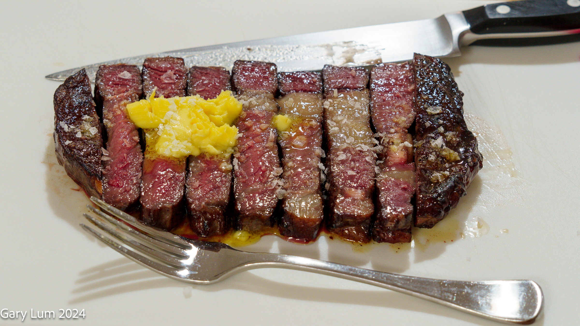 - Add some butter to melt on the steak.