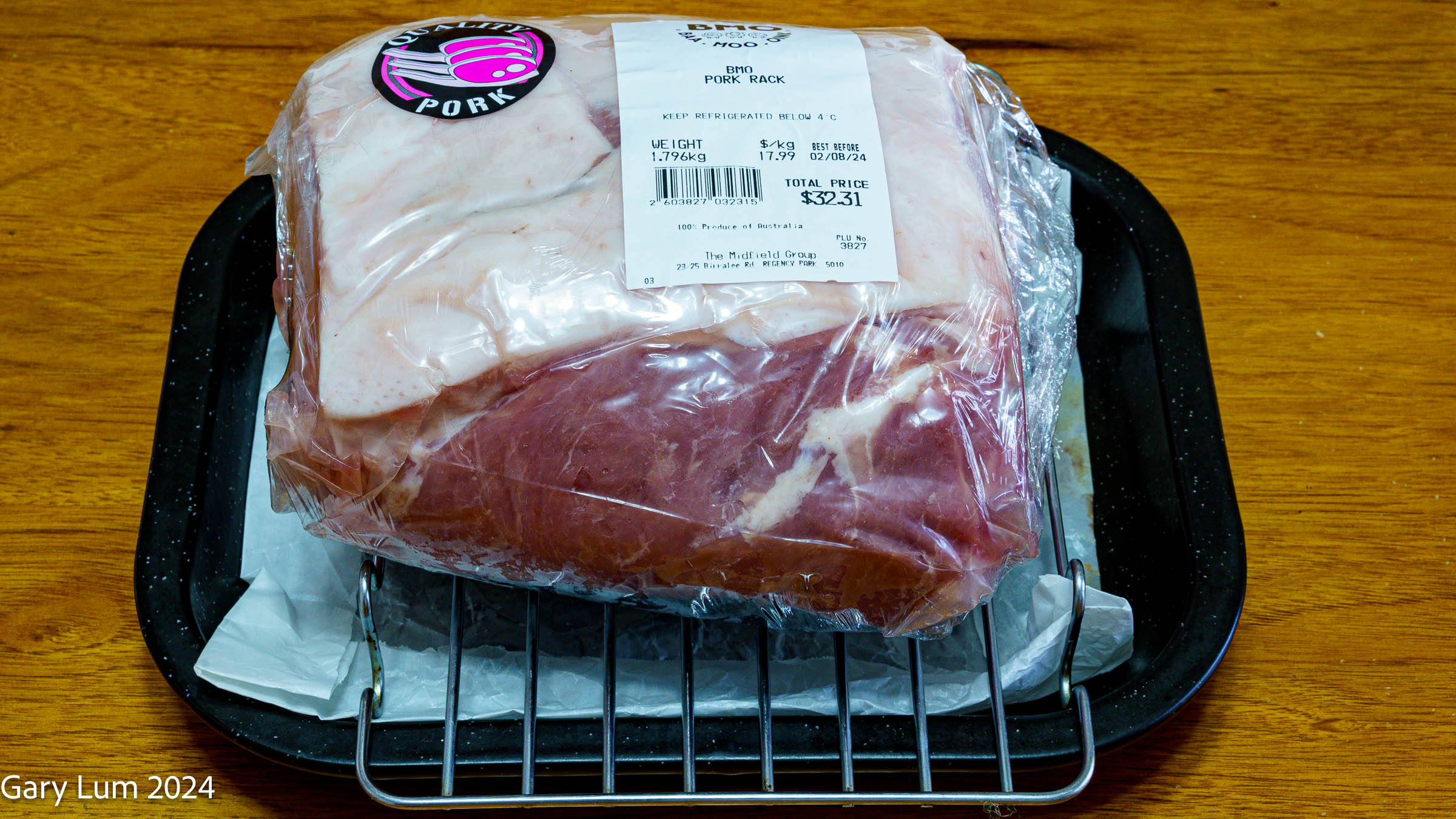 Pork Rack, also known as a pork rib roast or centre-cut pork loin, comes from the rib area of the pig’s loin. It’s a long cut of meat with a bit more fat, making it flavourful. The rack of pork is the pork equivalent of a rack of lamb, and it looks like seven or eight pork cutlets strung together.