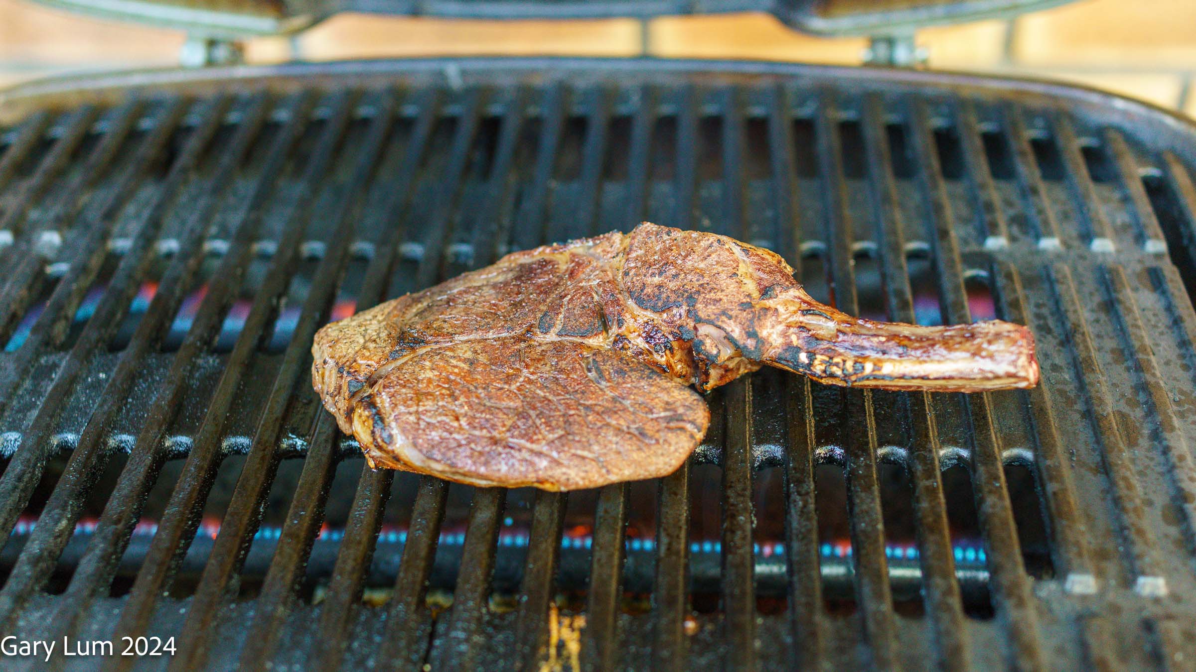 - Heat the barbecue grill and sear the meat on the grill and with a gas torch.