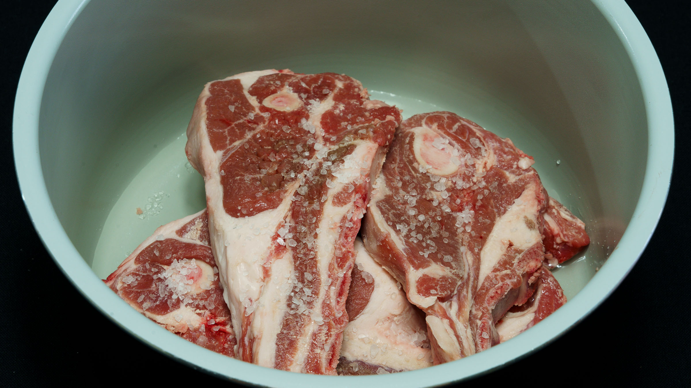- Add some salt and about half a cup of tap water.